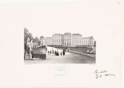 Belvedere (k.k. Gemälde-Gallerie.), Daguerreotyp - Ansichten. Getönte Lithografie von Franz Josef Xaver Sandmann; gedruckt bei J. Rauh; Verlag Artaria & Co in Wien. Bild: 14 cm x 20,4 cm, Blatt: 23,8 cm x 34,4 cm.