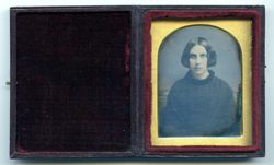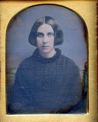 Das eindringliche Bildnis im Format einer neuntel Platte zeigt eine junge Frau, die dem Daguerreotypisten direkt in die Augen zu schauen scheint. Hinter ihr weitet sich eine Landschaft mit hohem Himmel, an dem zarte Wolken einkoloriert sind. (J.V.)