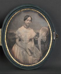 Jeune femme assise, à mi-jambes, de trois-quarts à droite, un livre à la main