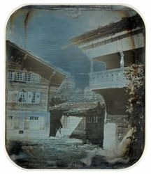 Maisons d’habitation situées sur le côté est de l’Obere Gasse, vue depuis la Postgasse, Meiringen. [Vue inversée]