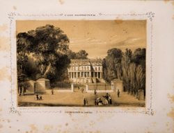 St. Cloud daguerréotypé No 52, Vue principale du Chateau. in: Paris et ses environs, reproduit par le daguerréotype. Sous la direction de M. Ch. Philipon. Artistes: MM. Arnout, Bayot, Bichebois, Bour, Boys, Cauchie, Cuvillier, Dumouza, Jaime, Nouveau, Provost, Sorrieu, Tirepenne et Villeret. - Paris. Chez Aubert et Cie, Editeurs, Marchands d'estampes et imprimeurs lithographes. - 1840.