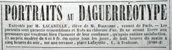 Advertisement for the making of Daguerreotype portraits, by M. Lacarelle, 'élève de M. Daguerre' from Toulouse