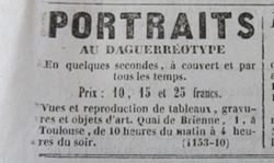Advertisement in "Journal de Toulouse" of June 17 1843, (Samedi - No 152.) for the making of daguerreotype portraits in the 'Quai de Brienne, no 1' in Toulouse.