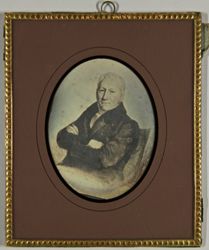 Gemäldereproduktion eines älteren Herren mit verschränkten Armen, sitzend, Halbfigur.