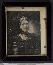 Hüftbild einer Frau mit schwarzem Spitzenkleid (Photoreproduktion nach einem Papierabzug)