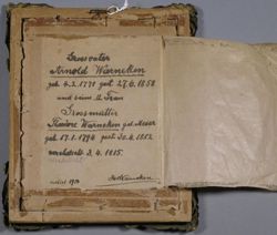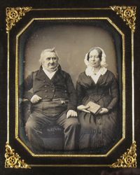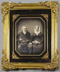 Wie ein Patriarch sitzt Arnold Warnecken selbstbewusst im Studio des Bremer Daguerreotypisten Feilner und drängt seine Frau Theodore etwas an den Rand. Gesten der Zuneigung oder Verbindung sind nicht zu erkennen. Die großformatige Daguerreotypie sitzt in einem dunkelbraunen Samtpassepartout, das mit den von Feilner bekannten Goldpapierborten und -ornamenten geschmückt ist. Der goldfarbene hölzerne Rahmen ist mit vier Eckornamenten aus in Form gepresstem Blech geschmückt, die mit Stiften aufgenagelt wurden. Eine rückseitige Inschrift spezifiziert die Dargestellten wie folgt: „Grossvater / Arnold Warnecken / geb. 4.2.1771 gest. 27.6.1858 / und seine II. Frau / Grossmutter / Theodore Warnecken geb. Meier / geb. 17.1.1794 gest. 30.4.1882 / verehelicht 3.4.1815. / notirt 1914 JeWarnecken“. (J.V.)