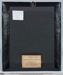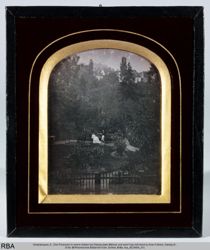 Drei Personen in einem Garten bei Danzig (zwei Männer und eine Frau mit Hund zu ihren Füßen)
