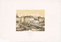 "Ferdinandsbrücke (Leopoldstadt.), Daguerreotyp-Ansichten. Die Ferdinandsbrücke in Wien, Ansicht nach einer Daguerreotypie. Getönte Lithografie (stärker getönt als HMW 68390) von Wilhelm Mayer, 1847; gedruckt bei J. Rauh; (No. 22.); Verlag von Artaria & Co in Wien; Probedruck. Bild: 15,8 x 21,2 cm Blatt: 30,6 x 44,5 cm"