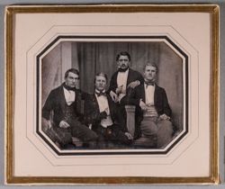Group portrait of four young men, three of them sitting. 3rd from the left is General Consul Adolf Fredrik Wasenius (Helsingfors 16.1.1829-28.2.1903).