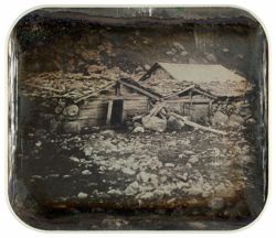Chalets d’alpage avec pierres calcaires au premier plan. [Vue inversée]