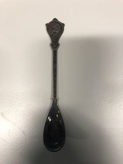 Zilverkleurige lepel met een glad, ovale blad. De steel is recht met aan de zijranden een opstaande rand, met onderaan een krul. Op de steel staat de tekst: koningin Beatrix. De spadel heeft een sleutelgat vorm met onderaan een hartvorm. Op de spadel staat in basreliëf een portret en profiel naar rechts van Beatrix. Bovenop de spadel staat een kroon. Links en rechts naast de kroon zit een krulmotief. De achterkant van de lepel is glad. De lepel zit met nog 3 andere lepels, waar het een serie mee vormt, in een witte doos met bruine bloemen en een doorzichtige plastic deksel.