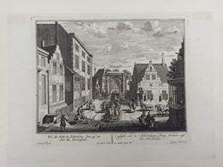 De ets toont een gezicht op de Scheveningse brug gezien vanaf het Noordeinde. Op het straatgezicht bevinden zich mensfiguren en paarden.