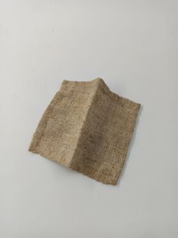 Vierkante jute deken met een vouw in het midden.